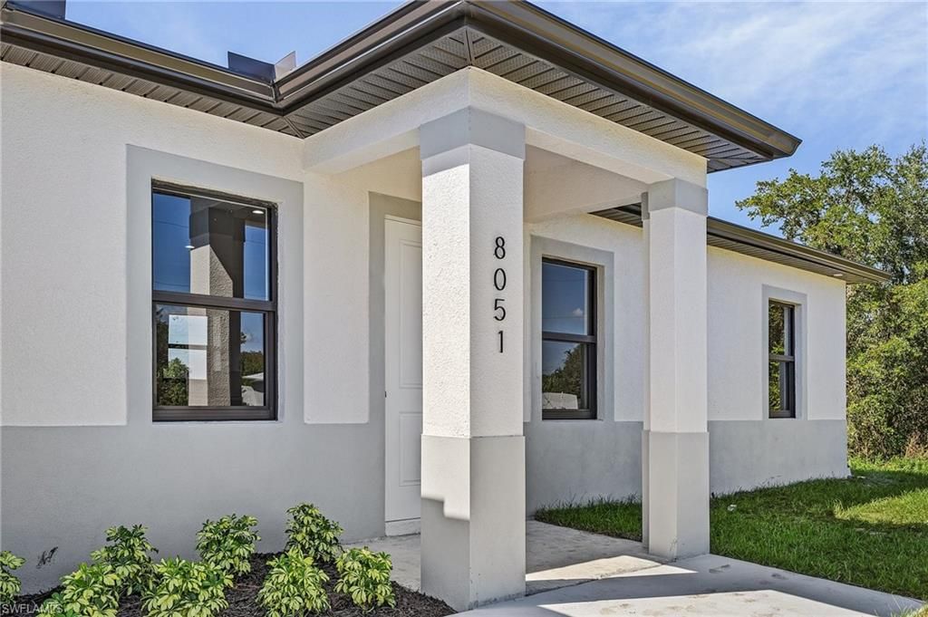 Welcome Home! 10-foot ceilings, stylish 12x24" tile flooring throughout, enhanced by impact windows for added protection. Quartz Countertops, solid-wood soft-close cabinets, and high-end stainless steel appliances. The unique island includes a built-in range, a stainless steel hood suspended from the ceiling, a built-in microwave, and a cozy open seating area. The Master Bedroom offers a seamless transition into a stunning private bath, complete with a spacious custom-tiled shower enclosed by full glass panels, an expansive walk-in closet, and a luxurious dual sink vanity for maximum comfort. The floor plan also boasts a flexible 4th Bedroom that can double as a home office, plus a dedicated interior laundry room off the garage with a washer and dryer included with the purchase! The exterior features a striking contemporary design, including custom-painted garage and front entry doors, and impressive 8' Doors. Potential for seller credit toward closing costs.